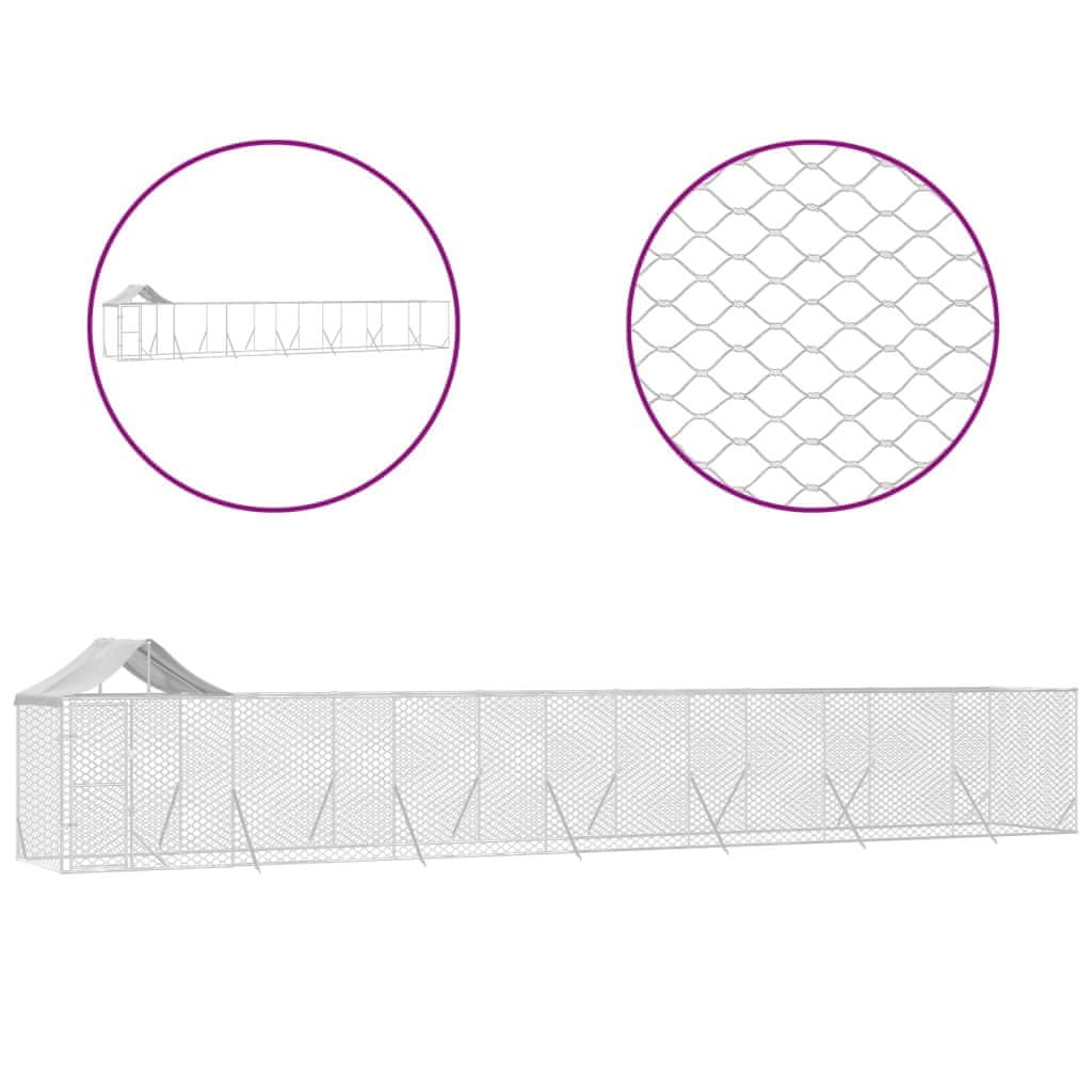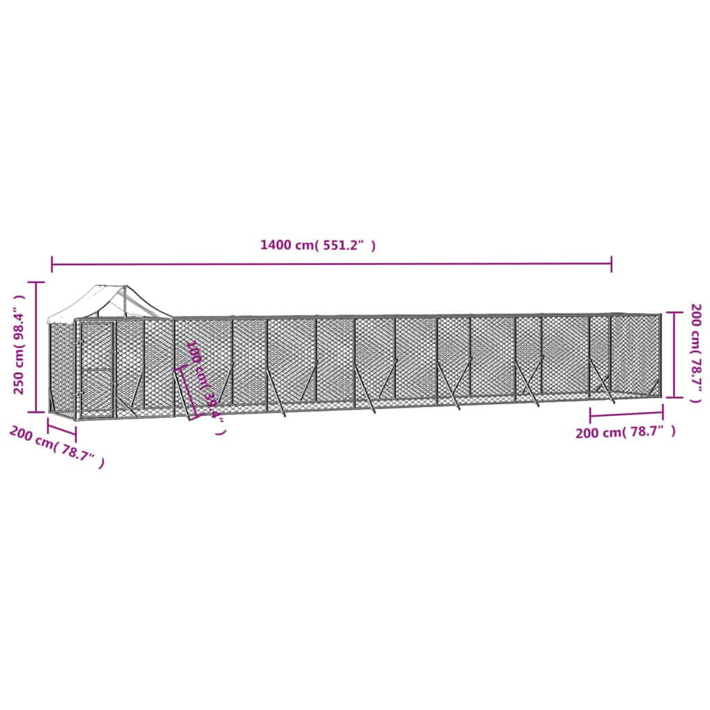 Vidaxl Zunanja pasja ograda s streho srebrna 14x2x2,5m pocinkano jeklo