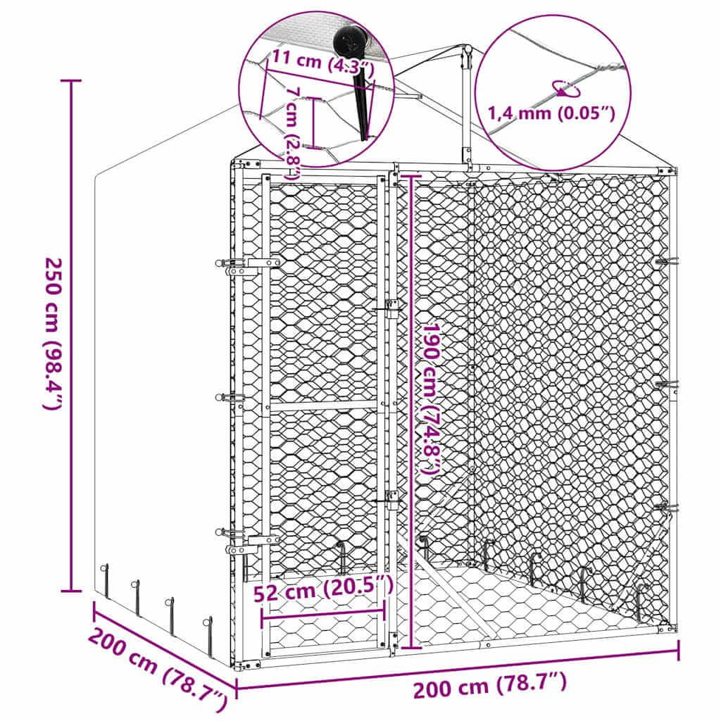 Vidaxl Zunanja pasja ograda s streho srebrna 2x2x2,5 m pocinkano jeklo