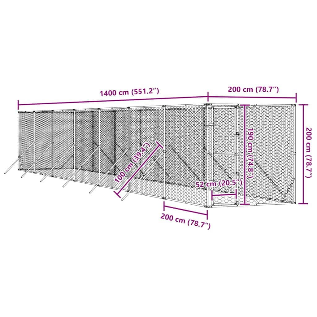Vidaxl Zunanji pasji boks srebrn 2x14x2 m pocinkano jeklo