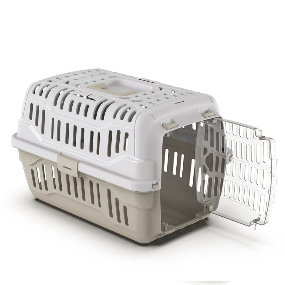 Visokokakovostni plastični zaboj s plastičnimi vrati za mačke ali majhne pse.
