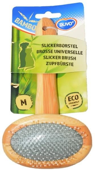 Greben za odstranjevanje odmrlih dlak brez draženja kože. Primeren za gosto, dolgo in kodrasto dlako srednjih pasem. Ergonomski ročaj iz okolju prijaznega bambusa. Primeren za pse in mačke. Dimenzije: 18 × 10 cm (dolžina x širina).