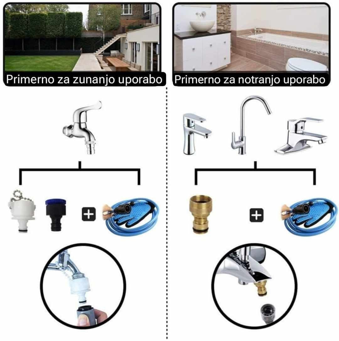 4. Enostavna montaža: Povežite cev z adapterjem, ki ustreza vaši pipi, in že ste pripravljeni na kopanje. Močna pritrditev zagotavlja brezskrbno uporabo.
