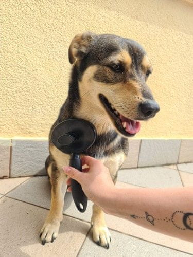 • SAMOČISTILNA – krtača je samočistilna, zahvaljujoč priročnemu gumbu učinkovito in hitro odstranjuje dlake z igel. To je zelo udobna rešitev pri česanju živali, ker pri krtačenju vam ni treba puliti dlak, samo uporabite udoben gumb in dlake bodo same odpadle.
