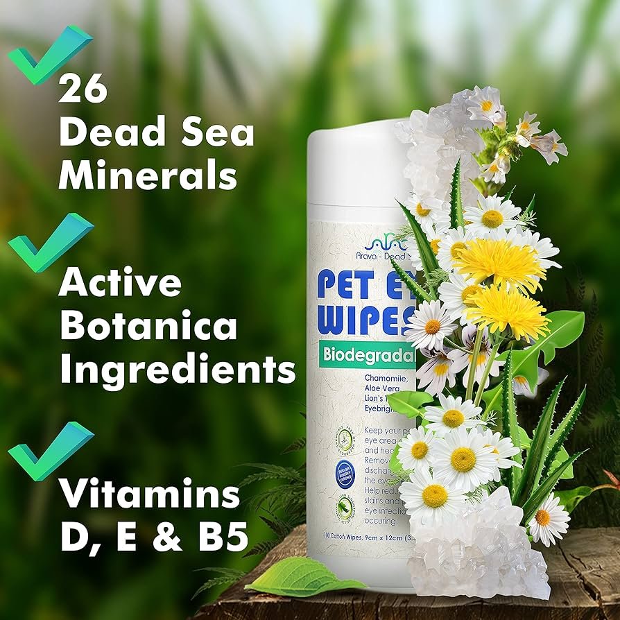 AravaDeadSeaPetSpa Čistilni robčki za nego pasjih in mačjih oči, 100 BIORAZGRADLJIVIH robčkov 9x12cm