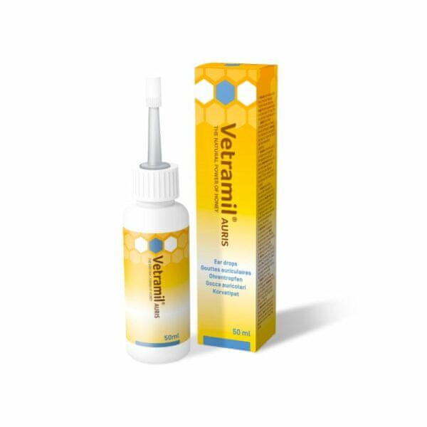 Vetramil Auris je edinstvena formula osnovana na medu za nego zunanje ušesne votline. Antioksidanti v medu pomirjajo občutljivo in pordelo kožo v ušesu. Pri vsakodnevnih težavah z ušesi je čiščenje ušes zelo pomembno. Vetramil Auris vsebuje propilen glikol, ki pomaga pri čiščenju ušes z raztapljanjem nakopičenega ušesnega masla. NE vsebuje zdravilnih učinkovin ali konzervansov. Kombinacija medu in propilen glikola pa preprečuje razrast bakterij, gliv in kvasovk.