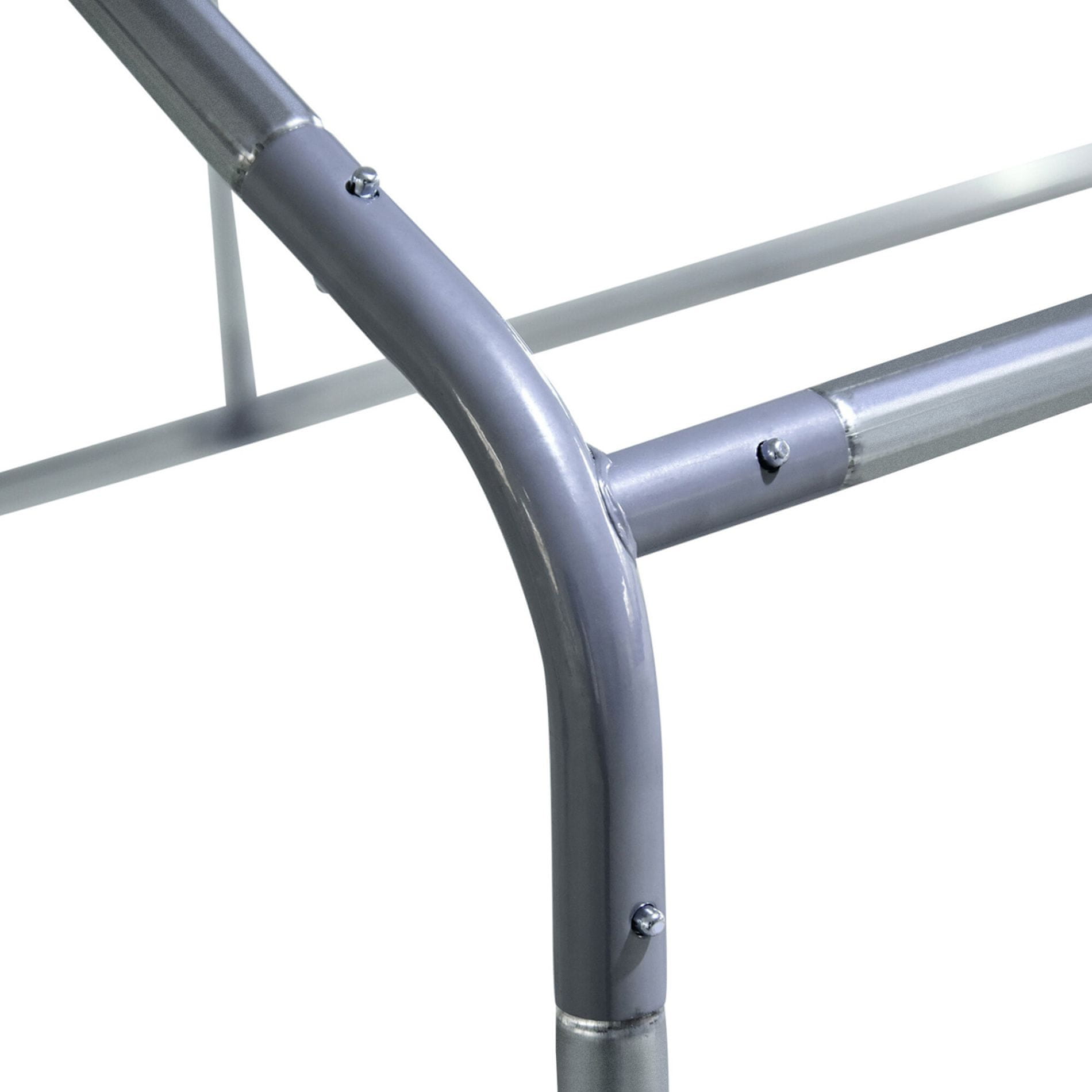 Kletka izdelana iz trdne srebrne pocinkane jeklene, ki bo zagotovila ustrezno stabilnost izpusta in preprečila neželene poškodbe, kot so pobegi vaše perutnine. Konstrukcija je dopolnjena z pocinkano mrežo v zeleni barvi in streho, ki jo sestavlja siva PVC ponjava.