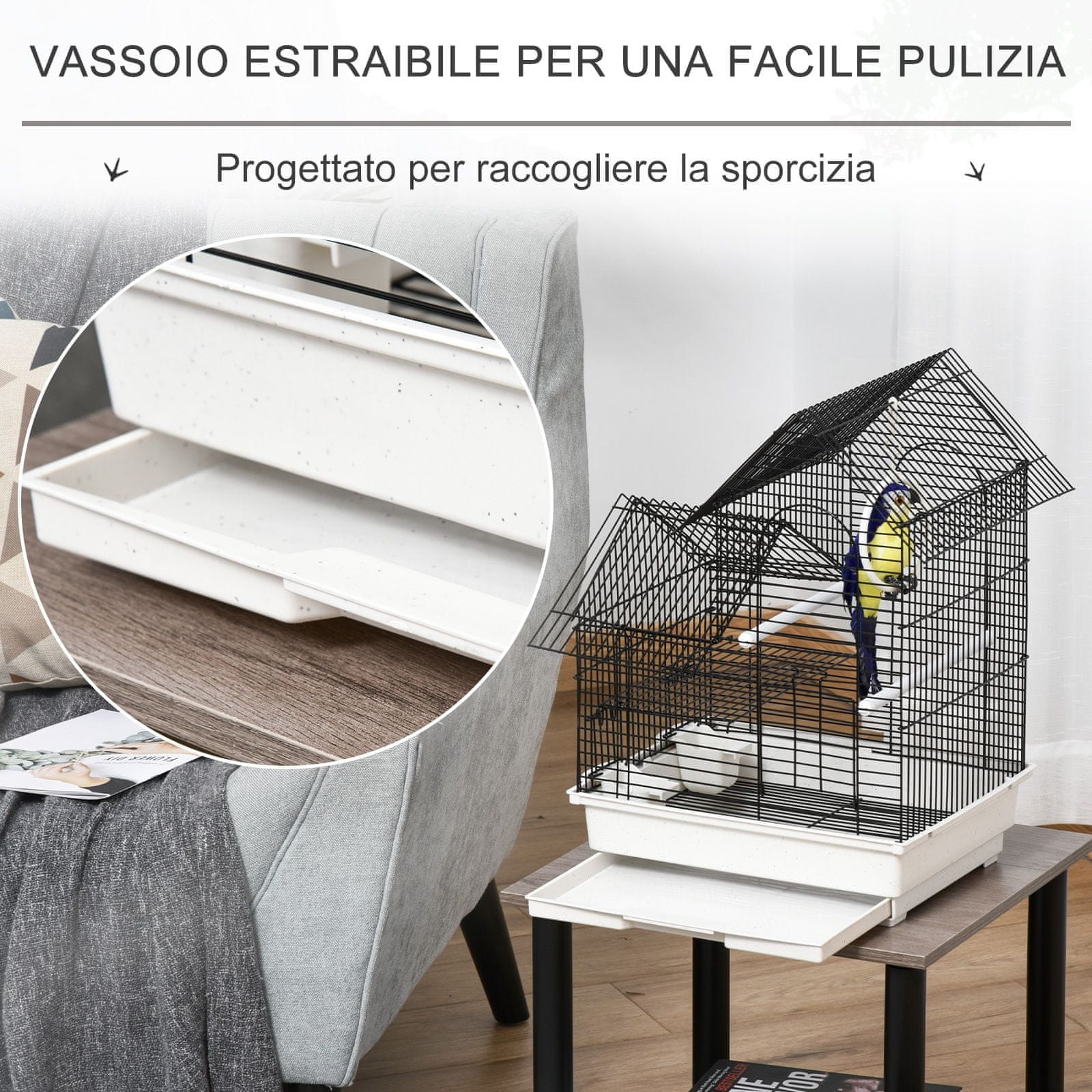 PAWHUT kovinska kletka za ptice z ročajem, izvlečnim pladnjem, stopnicami in plastično gugalnico, 39x34x47cm