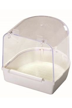 Važen del opreme kletke. Ptice se v njej ne le kopajo, temveč iz nje tudi pijejo.