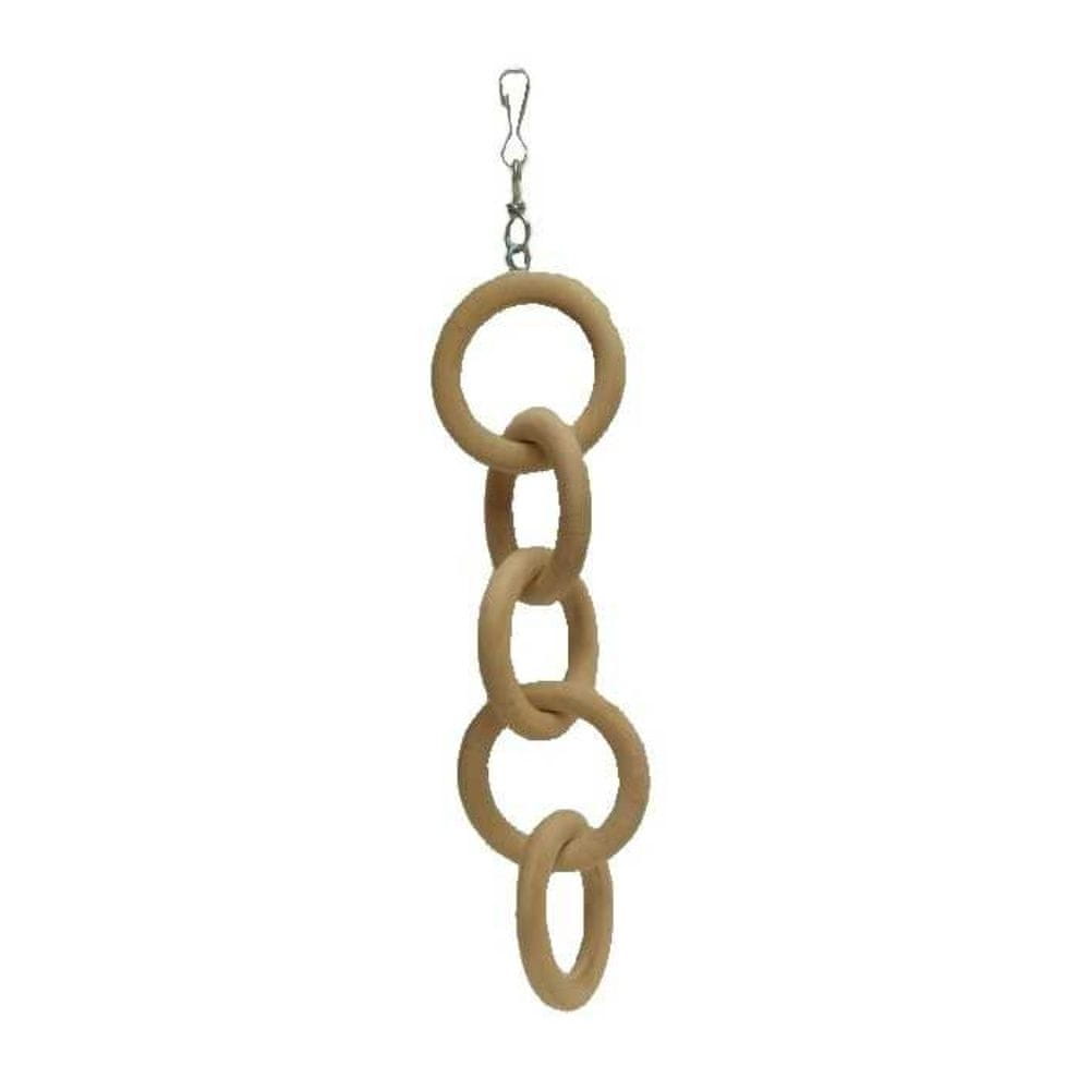 Leseni obročki, povezani v verižico. Debelina lesa je približno 1 cm, zunanji premer približno 8 cm, igrača je primerna za srednje velike in velike papige, namenjena plezanju, obešanje s karabinom. Zaradi obroča se privita zanka ne bo izvlekla, tudi če bo papiga vrtela kroge.