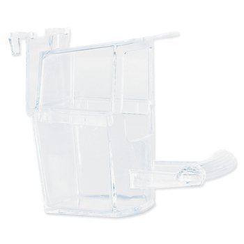 Plastična pokrita krmilnica z gredico za okrasne ptice.