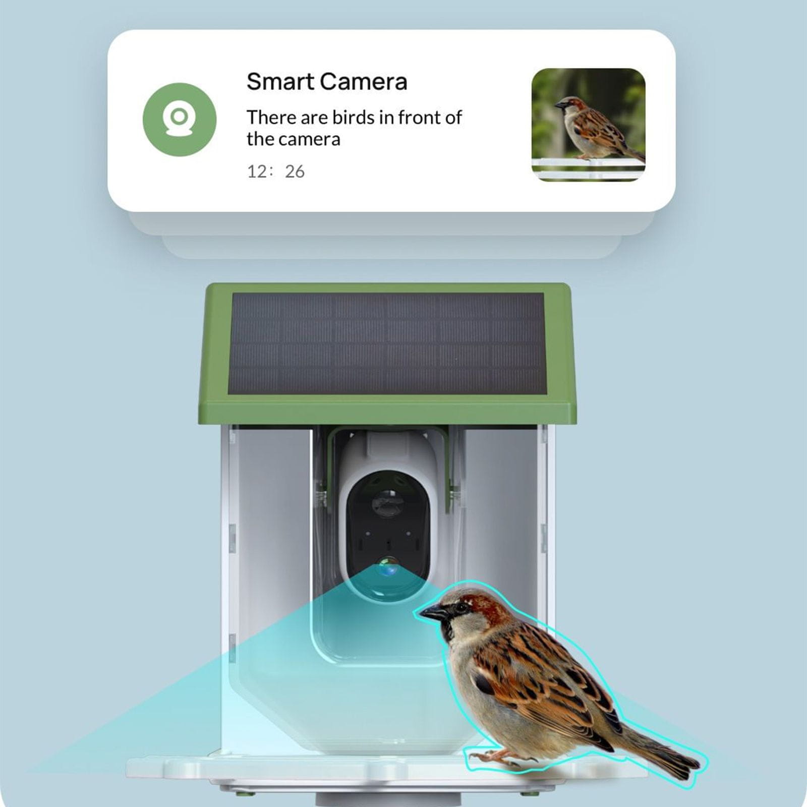 Pametna krmilnica ima tudi inteligentno funkcijo zaznavanja ptic in alarma, ki vas takoj opozori na prisotnost ptic, medtem ko funkcija sirene učinkovito odganja neželene obiskovalce, kot so veverice.