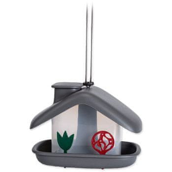Sodobna in elegantna krmilnica za zunanje ptice v obliki hišice, ki jo lahko praktično obesite na katero koli vejo. Celoten opis