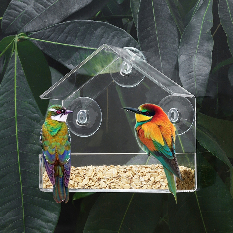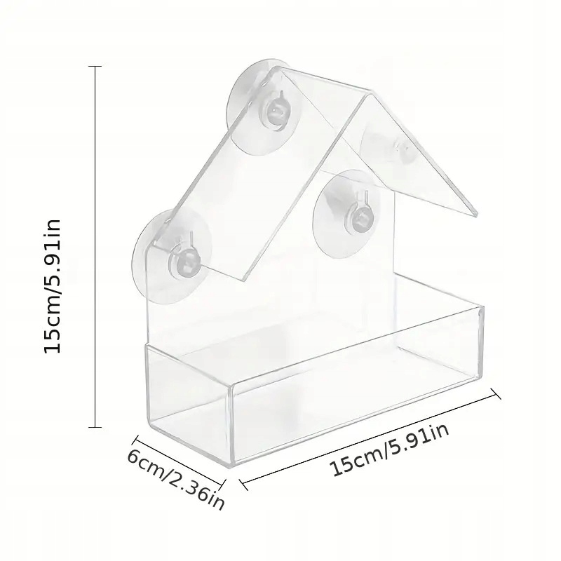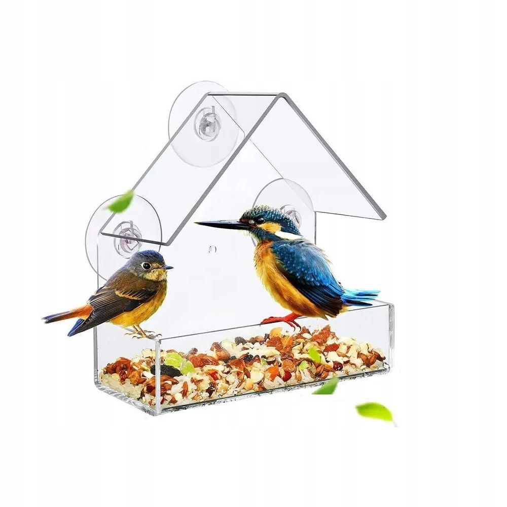 Opazujte žive podrobnosti ptic doma s to prozorno krmilnico za ptice. S trikotno streho, ki ščiti pred dežjem, močnimi priseski in trpežnim prostorom za hrano je ta krmilnica popolna rešitev za vse ljubitelje narave.