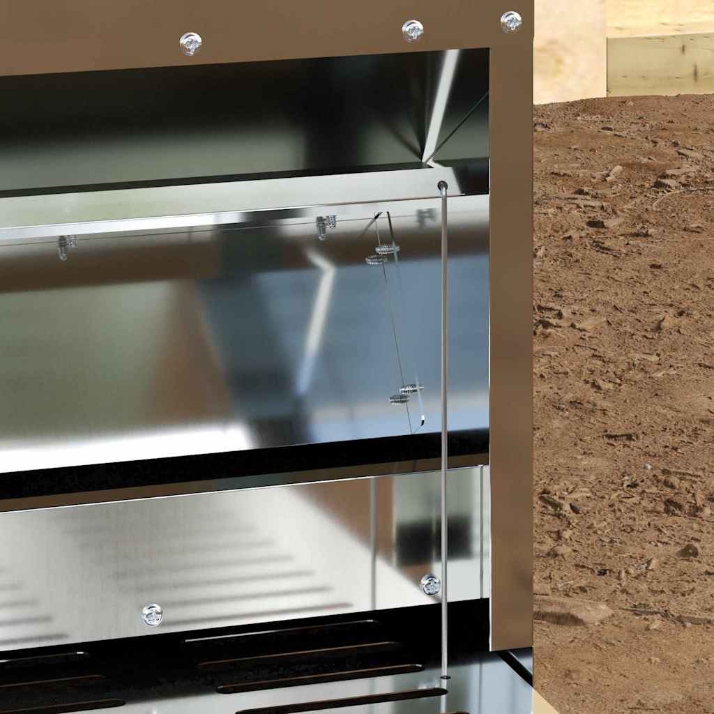 Ta hranilnik za kokoši iz jekla ponuja super ravnotežje med funkcionalnostjo in udobjem. Ima čist in moden videz, kar se lepo vklopi v vsak vrt ali prostor za perutnino. Idealna je tako za notranje kot zunanje prostore, saj omogoča kokošem, da vedno uživajo svežo hrano, njegova velikost pa je perfektna za velike jate, kar pomeni, da shranjuješ velikokratno hrano in zmanjšuješ nenehno polnjenje.