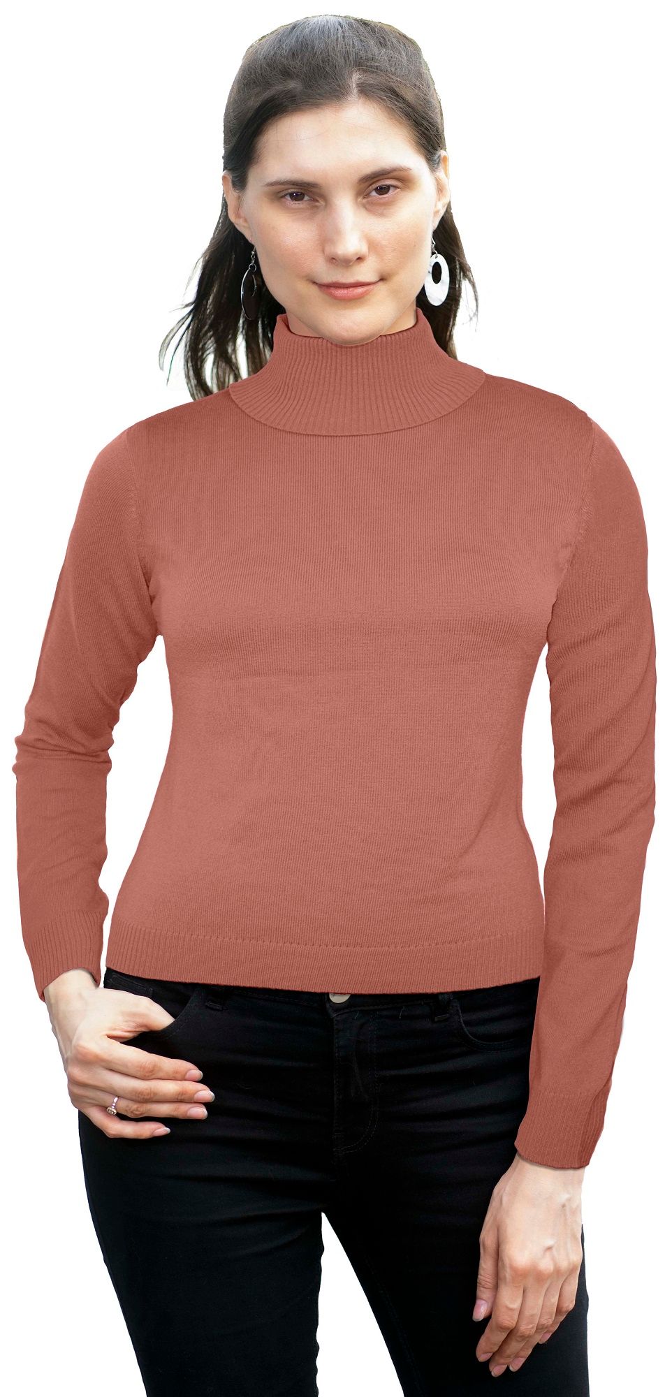 PANTONECLO Ženski pulover z visokim ovratnikom, Barva terakota, L
