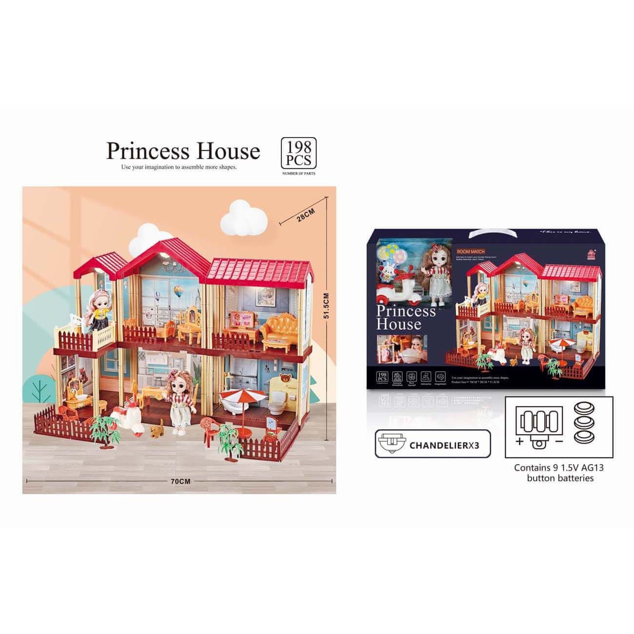 Set princeskine hiške je sanjski set vsake deklice, ki si želi ustvariti svoj čarobni svet, poln ustvarjalne zabave. Ta očarljiva hiška ponuja možnost interaktivne igre, ki bo razvnela domišljijo in navdušila vašo deklico. Komplet vsebuje vse potrebne dodatke za okrasitev hiše: različno pohištvo, rastline in druge dodatke. Hišo je mogoče urediti v različnih konfiguracijah. Komplet vsebuje kar 198 elementov. Pakiran je v elegantni škatli. Odlična ideja za darilo za najmlajše princeske.