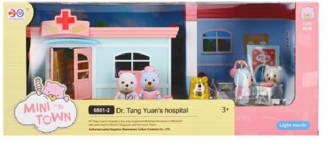 Komplet vključuje bolnišnično hišico, postelje, pohištvo za zdravniško ordinacijo, invalidski voziček in 3 figurice medvedkov. Komplet je izdelan iz plastike.