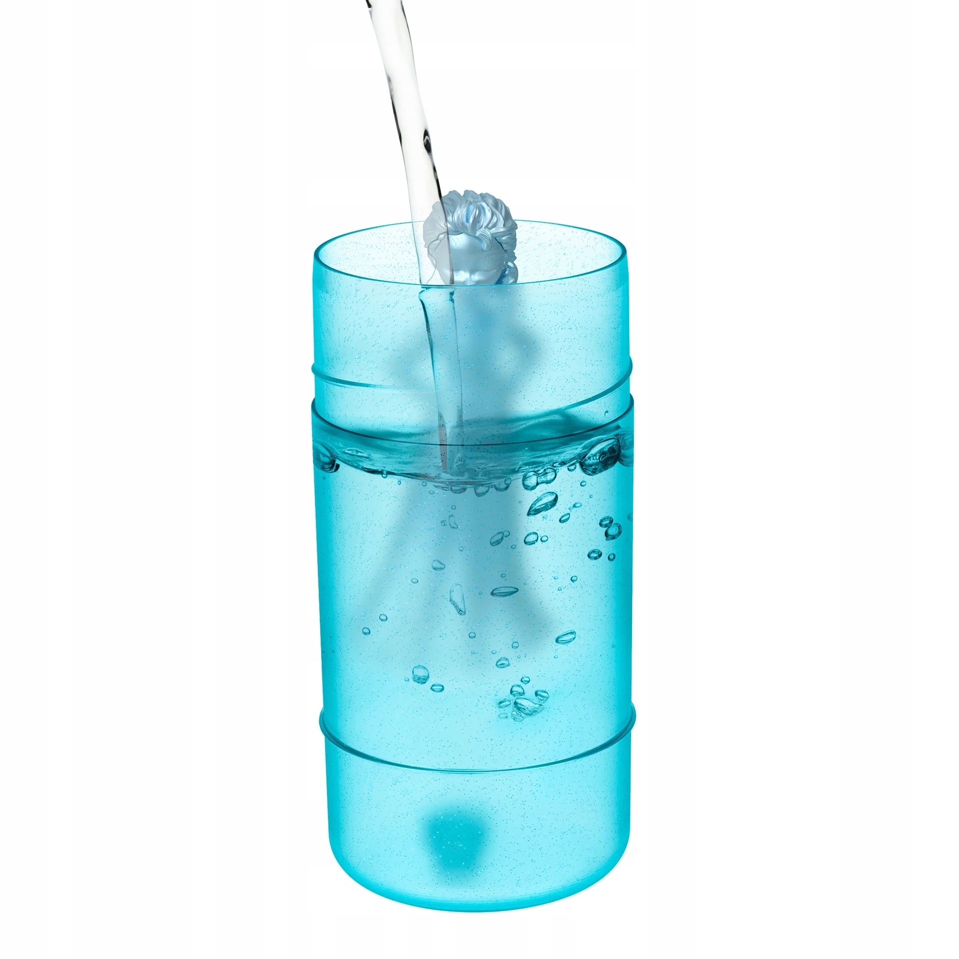 • Vzemite vse iz tube, jo napolnite z vodo in vanjo postavite punčko – pretresite gor in dol, da začnete zabavo