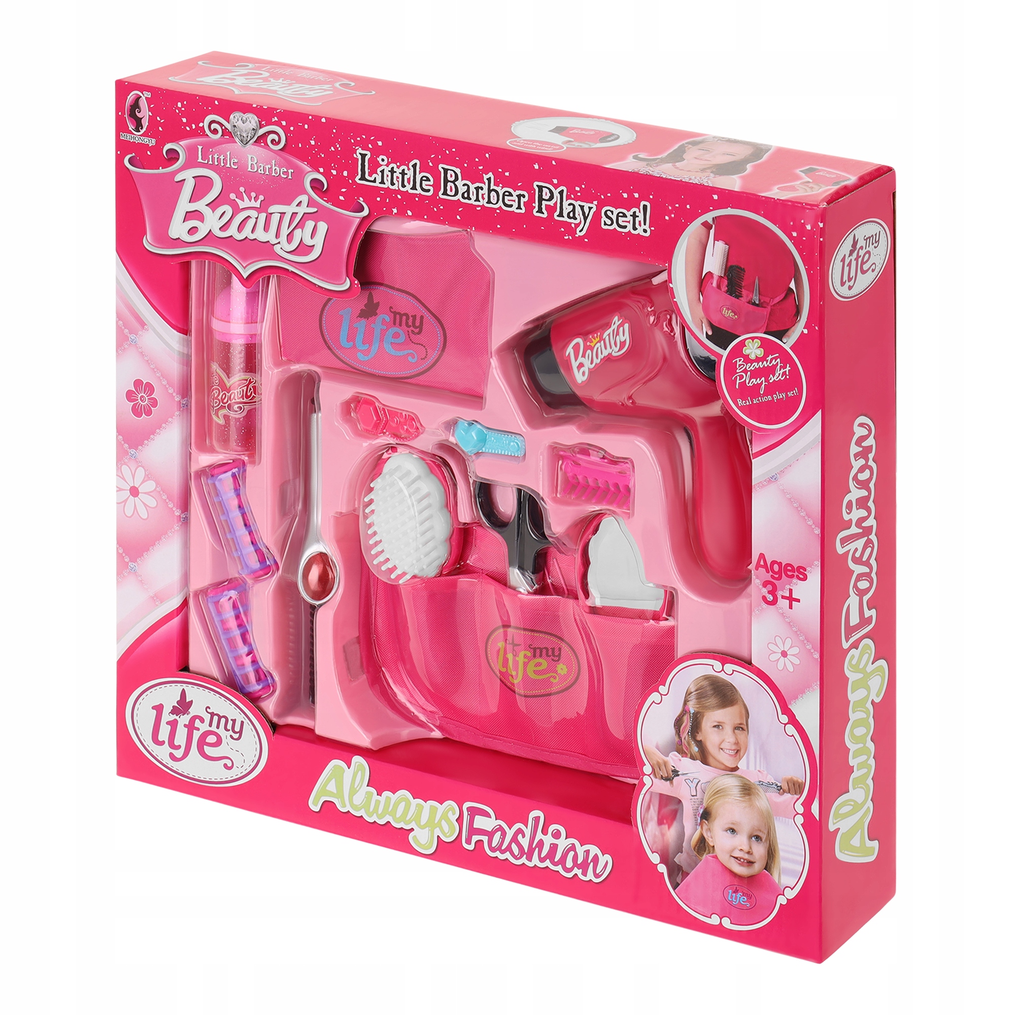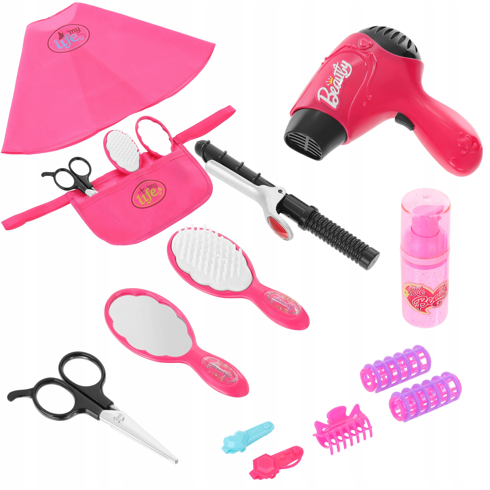 Vsi dodatki, ki so vključeni v komplet, imajo neverjetno realističen videz. To je fantastično za igranje vlog frizerke in stranke. Zabava bo še bolj zanimiva. Poleg tega lahko pomaga premagati strah pred obiskom pravega frizerskega salona.