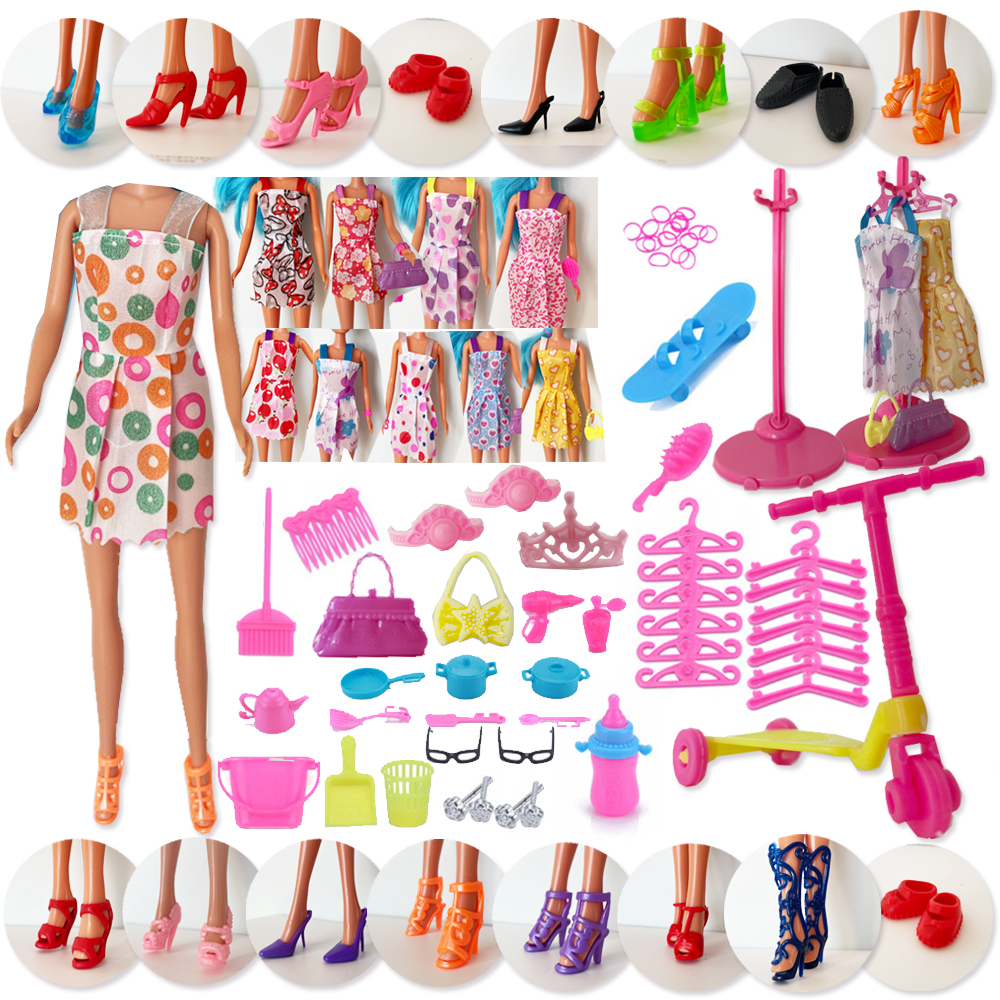 Oblačila, obleke, dodatki za punčke, komplet 85 kosov, darilo za rojstni dan Celoten opis