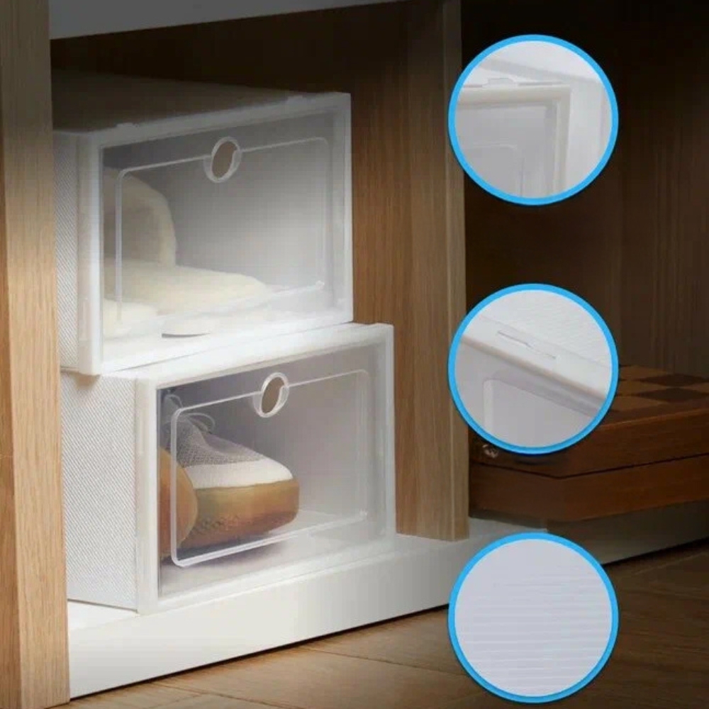 ◽️ Vsestranskost: Vsaka škatla je zasnovana za en par čevljev – od superg, balerink do visokih pet. Ker je škatlo mogoče postaviti na bok, bo ustrezala tudi višjim čevljim.