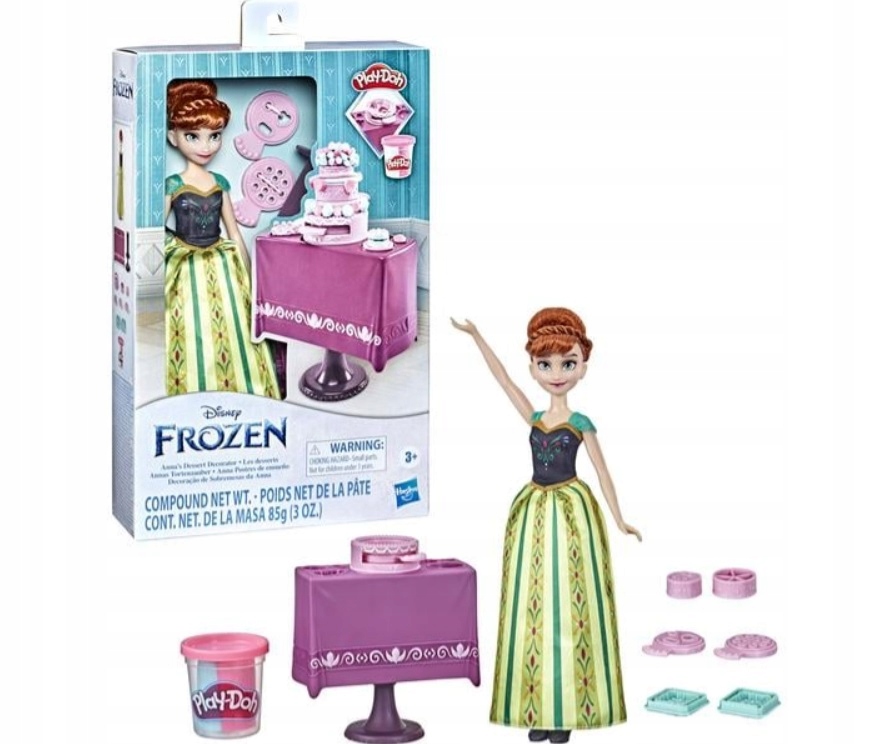 Ustvarite različne oblike, navdihnjene z Ledenim kraljestvom, s kompletom Aninih slaščic in vse vrste lažnih sladkarij s posebnimi modelčki in dvobarvnim plastelinom. Punčka Ana z spetimi lasmi nosi dolgo obleko in črne čevlje.