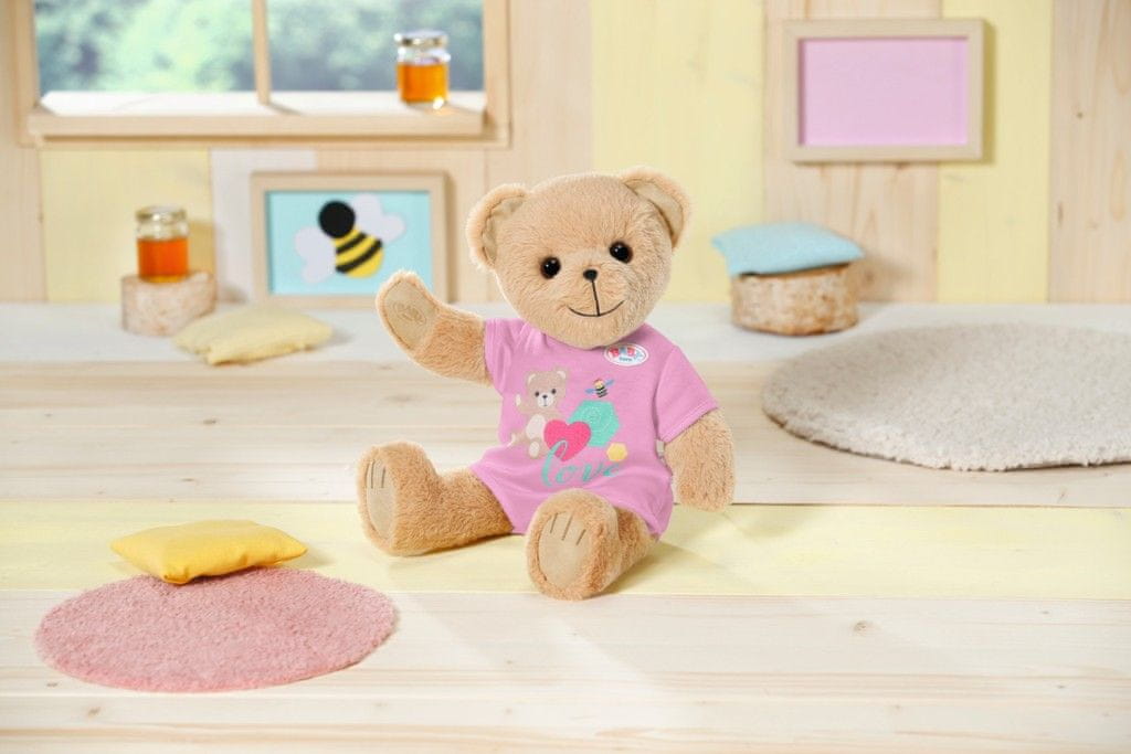 Nov prijatelj za lutke BABY born in za vse ljubitelje BABY born. Ali pa je to prijatelj? Ni pomembno, medvedek je lahko karkoli: deklica, deček, dojenček, medvedek, soigralec, hišni ljubljenček, princeska ali celo voznik skuterja – od najzgodnejšega otroštva, dokler otroštvo ni le še oddaljen spomin. Medvedek s sladkim nasmehom ima mehko telo. Oblečen je v ljubko roza obleko. Ima svojo modno kolekcijo in medvedje dodatke, lahko pa obleče tudi skoraj vse, kar nosi punčka BABY born. Uporablja lahko tudi njene dodatke. Medvedek je zasnovan tako, da se prilega skoraj vsem oblačilom BABY born v velikosti 43 cm. Ne prilegajo se ji le čevlji. Toda kateri medvedek bi potreboval čevlje? Z gibljivimi rokami in nogami ter vrtljivo glavo ga lahko preprosto preoblečete. Je zelo gibčen in zato odličen spremljevalec pri igranju različnih iger. Kdo bo prvi kaj zapisal v knjigo prijateljstva? Knjiga prijateljstva vsebuje tudi list z nalepkami. PS: V novi animirani seriji BABY born seveda sodeluje tudi medvedek. Skupaj z BABY born Emo in njenimi prijatelji doživlja Teddy razburljive pustolovščine. Ne oklevajte in si oglejte naš kanal BABY born v češčini na YouTubu!