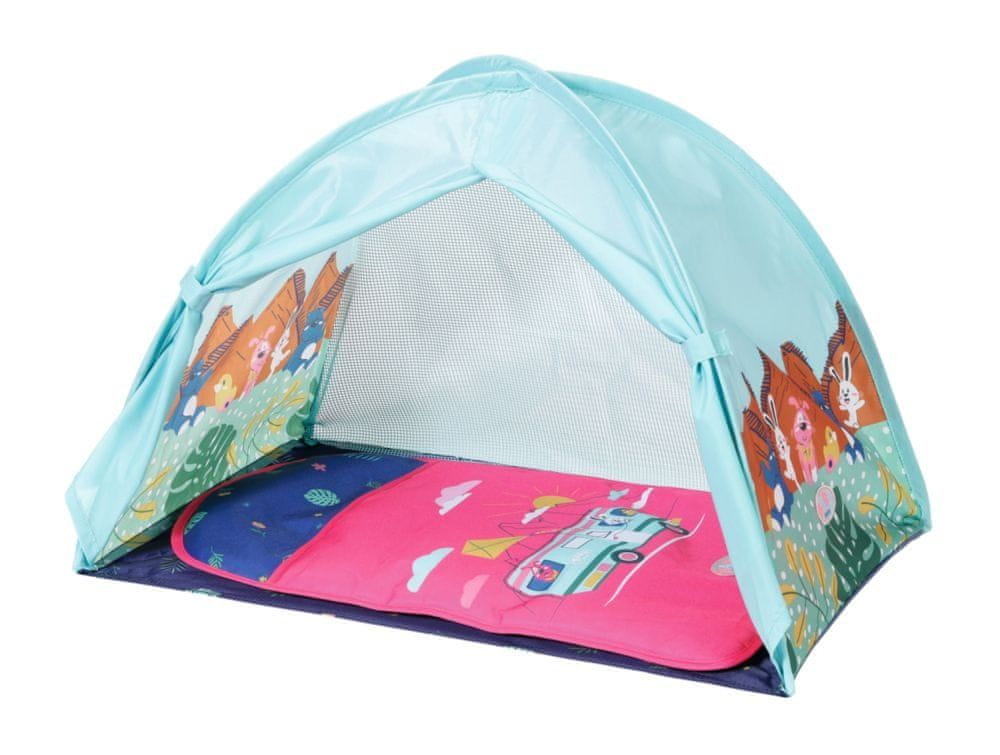 Gledanje sončnega vzhoda iz otroške posteljice je preprosto neverjetno. Zato BABY born poišče miren kotiček na vrtu in tam postavi svoj turkizni šotor. Na zunanji strani šotora so slike njenih živalskih prijateljev, ki uživajo na pohodu v gorah. Nad gorečim ognjem BABY born peče marshmallow in pije zeliščno limonado. Nato se zlekne v rožnato spalno vrečo in preživi noč na svežem zraku. Zjutraj, ko pri sosedih zakikirika petelin, odgrne sprednji del šotora in navdušeno opazuje rožnato in modro nebo ter vzhajajoče sonce.