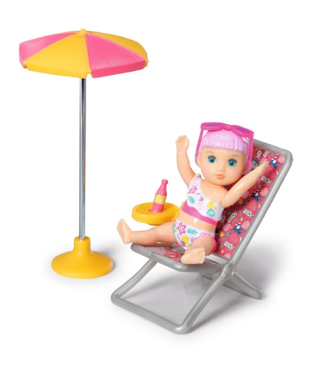 Mini lutka Lara se rada sprošča v svojem poletnem ležalniku. Še posebej po dolgem igranju v vodi. Včasih si privošči požirek limonade iz svoje male stekleničke, ki jo hrani na priročni rumeni mizici. Sončna očala ima ležerno v laseh in uživa v miru in soncu.
