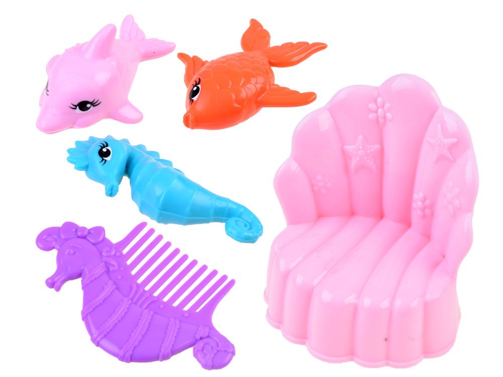 Očarljiv, čaroben set lutk Anlily Morska deklica bo vsakemu otroku zagotovil izvrstno zabavo. Komplet sestavljajo tri lutke morskih deklic, tri morska bitja in čudovit stol. Velika lutka morske deklice ima na glavi dolge vijolične lase z diademom, gibljive roke, gibljiv rep in gumijasto gibljivo plavut. Celotna lutka je narejena iz plastike, pri čemer je pozornost namenjena najmanjšim podrobnostim.