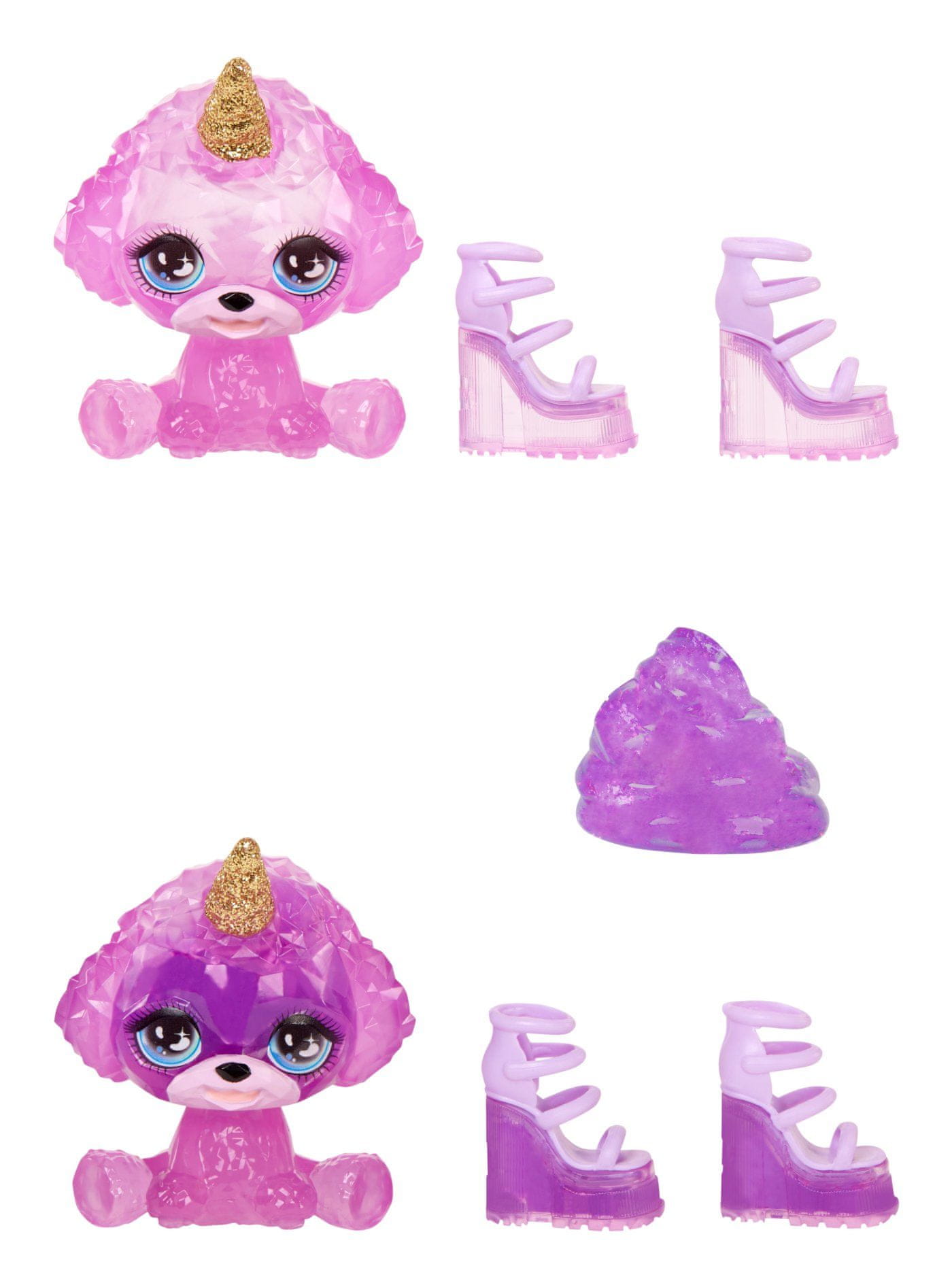 Nove lutke Rainbow High se svetijo kot mavrica, njihova koža se magično lesketa. Vsaka lutka ima hišnega ljubljenčka v svoji ikonični barvi. V paketu boste našli vnaprej pripravljeno sluz, ki ji lahko dodate bleščice in z bleščečo sluzjo napolnite hišnega ljubljenčka, torbico ali čevlje. Za večkratno uporabo. Mamice bodo cenile enostavno čiščenje slime.Contents paketa:- 1 od 6 popolnoma členjenih lutk- 1 hišni ljubljenček in sluz v barvi lutke- stojalo, glavnik in drugi dodatki