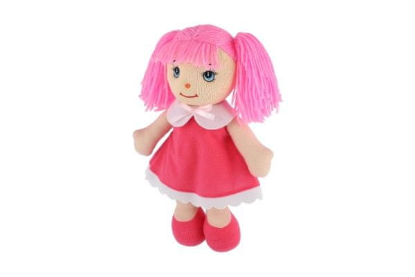 Hadrova lutka z rožnatimi lasmi v obleki ima mehko telo. Bila bo vaša najboljša prijateljica, ne le za crkljanje, temveč tudi za igranje. Zaradi prijetnega materiala in ljubkega videza bo postala odlična prijateljica za vsakodnevne dogodivščine in pomirjujoče zaspavanje. Meri 31 cm Primerna za dojenčke od 0 mesecev