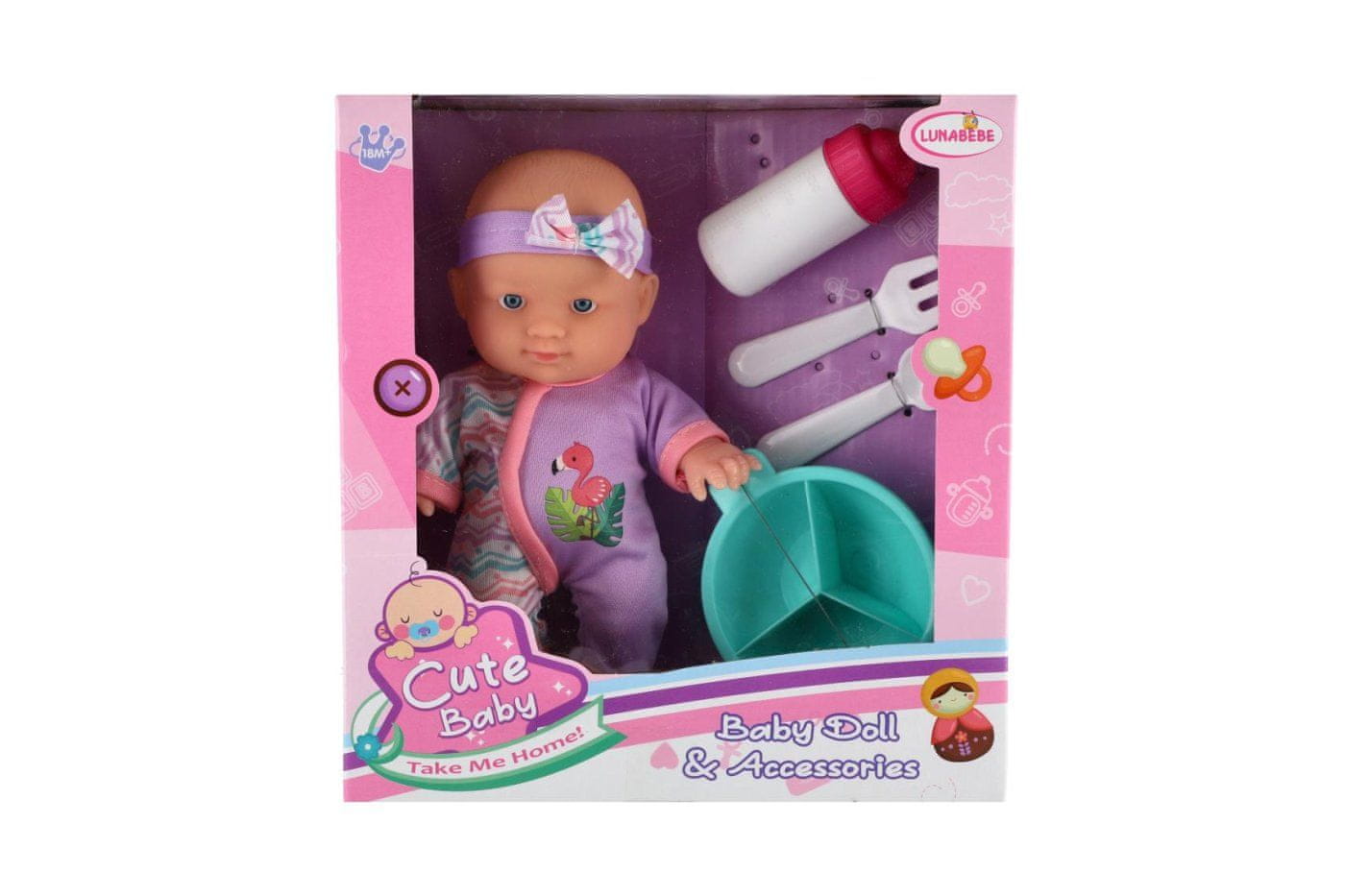 Razkošna lutka s čvrstim telesom. Ta dojenček bo zagotovo razveselil vsako deklico in postal njen nepogrešljiv del. V paketu je vključen jedilni set za malčke, ki ga zagotovo potrebuje vsaka mamica za svojega otroka. Velikost lutke: 20 cm Velikost paketa: 23 × 24 × 8 cm. Primerno za otroke od 3. leta starosti dalje.