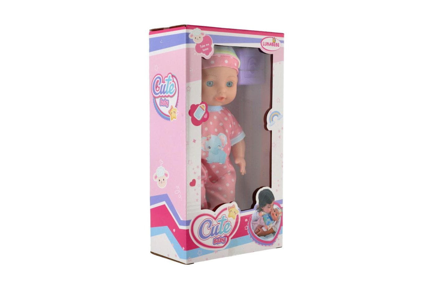 Razkošna lutka s čvrstim telesom. Ta dojenček bo zagotovo razveselil vsako deklico in postal njen nepogrešljiv del. V paketu je vključena igrača, ki jo zagotovo potrebuje vsaka mamica za svojega otroka. Velikost lutke: 25 cm Velikost paketa: 15 × 27 × 8 cm. Primerno za otroke od 3. leta starosti dalje.