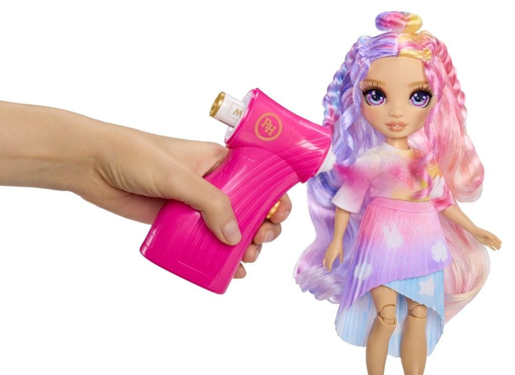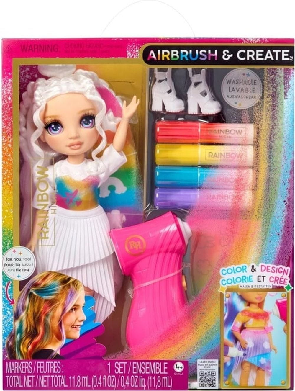Cilj šole Rainbow High je spodbujati ustvarjalnost in samozavest s pomočjo barv. Predstavljamo nov način barvnega oblikovanja lutke, ki jo lahko prilagodite svoji domišljiji. Lutka je od glave do peta v celoti bela, kar vam omogoča, da zlahka ustvarite barvne različice in vedno znova spreminjate njeno obleko ali pričesko. Uporabite lahko pralne markerje v paketu pištole za airbrush ali pa rišite neposredno na oblačila in lase. Nato samo sperite in ponovite. Vedno znova in znova.