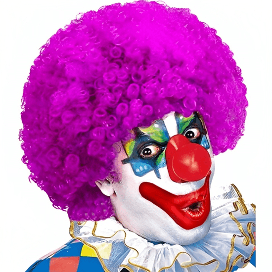 Pustna skodrana in klasična lasulja za klovna v vijolični barvi. Pustna lasulja je izdelana iz kvalitetnih materialov. Lasulja je primerna za odrasle in je univerzalne velikosti. Celoten opis