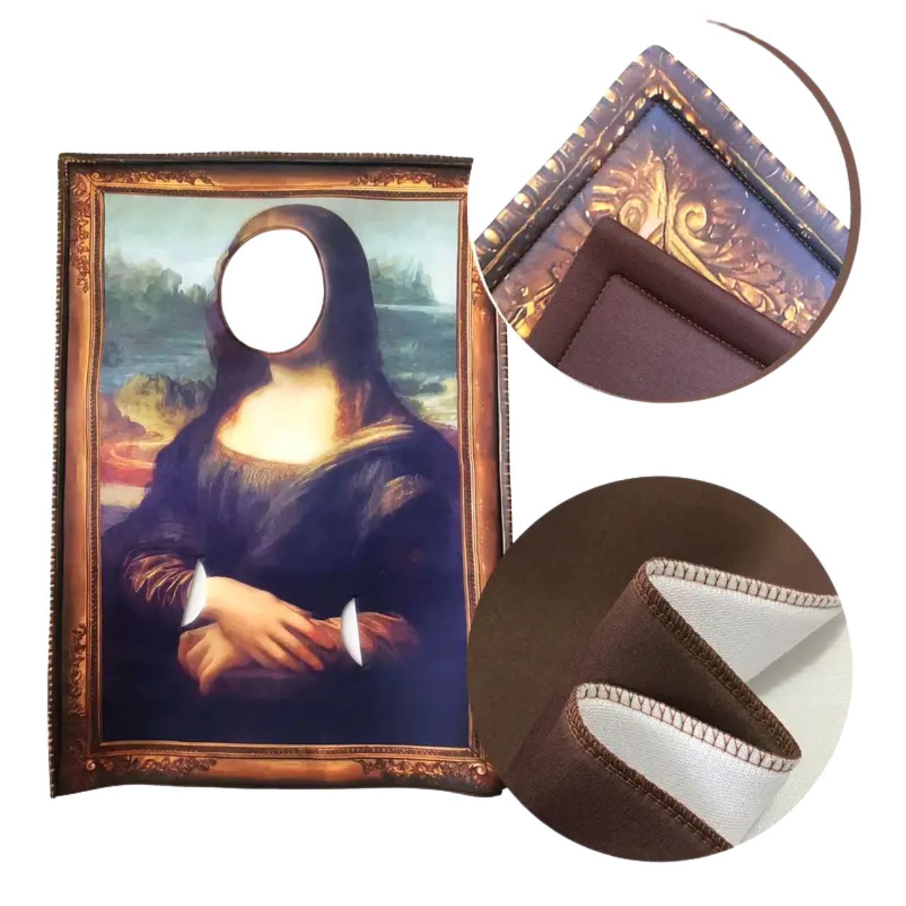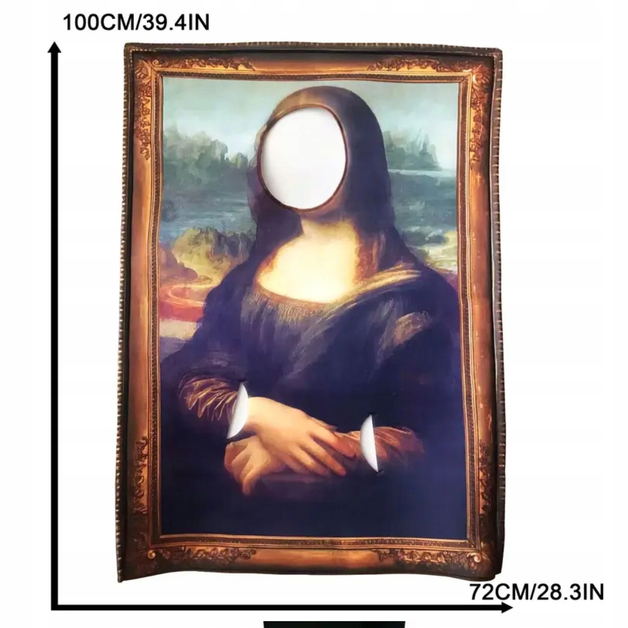 toustvarjalni kostum Mona Lisavas bo spremenil v najbolj znano sliko na svetu! Popoln za zabave v kostumih, noč čarovnic, poroke, rojstne dneve in druge priložnosti, kjer želite ustvariti vau faktor. Vaš obraz postane del slike – to jehit vsake kostumske zabave!