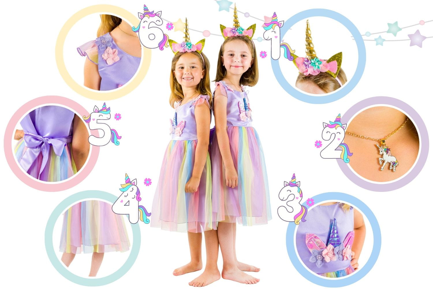 Krilo iz tila pleše v ritmu otroških sanj, medtem ko naglavni trak s samorogom postane pravi spremljevalec za dogodivščine, tudi vsakdanje. Bleščeča ogrlica z modnim obeskom v obliki samoroga bo navdušila še tako zahtevno malo damo.