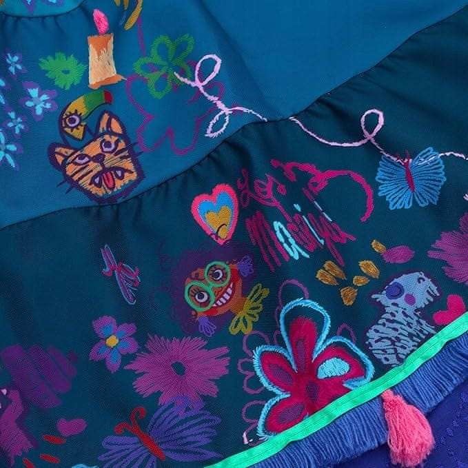 • Vezen otroški kostum: Ta otroški kostum očara s številnimi čudovitimi vezeninami, kot so vezeni cvetlični in metuljčki ter vezen napis „Mirabel“ na pasu.