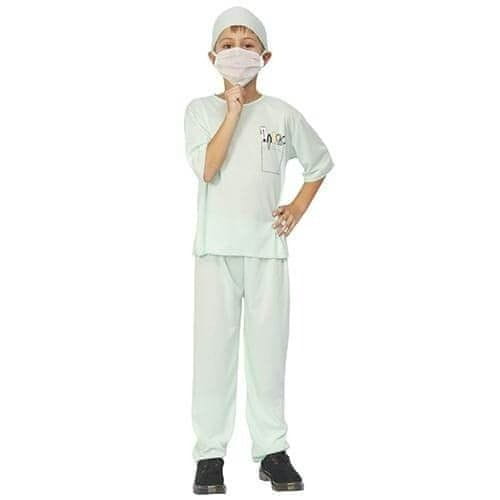 Zdravnik otroški kostum je pustni kostum, ki je bolj primeren za fante. Kostum zdravnik vsebuje dolge umazano bele hlače, ki imajo v pasu elastiko in so raztegljive. Poleg hlač spada zraven tudi majica, ki je enake barve kot hlače in ima kratke rokave. Zraven dobite tudi masko, kot jo imajo pravi zdravniki in čepico. Vse to je v enakih barvah kot so hlače in majica. Kostum je na voljo v treh različnih velikostih in sicer S (višina 110–120 cm), M (višina 120–130 cm) in L (višina 130–140 cm).
