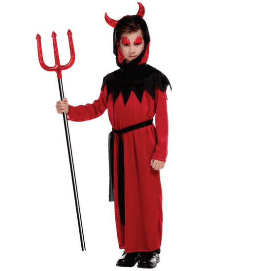 Otroški pustni kostum za hudička. Kostum je izdelan iz kvalitetnega in udobnega materiala. Kostum hudiček je na voljo v dveh velikostih. Pustni kostum vsebuje: tuniko s kapuco, na kateri sta prišita dva rožička in črn pas. Celoten opis