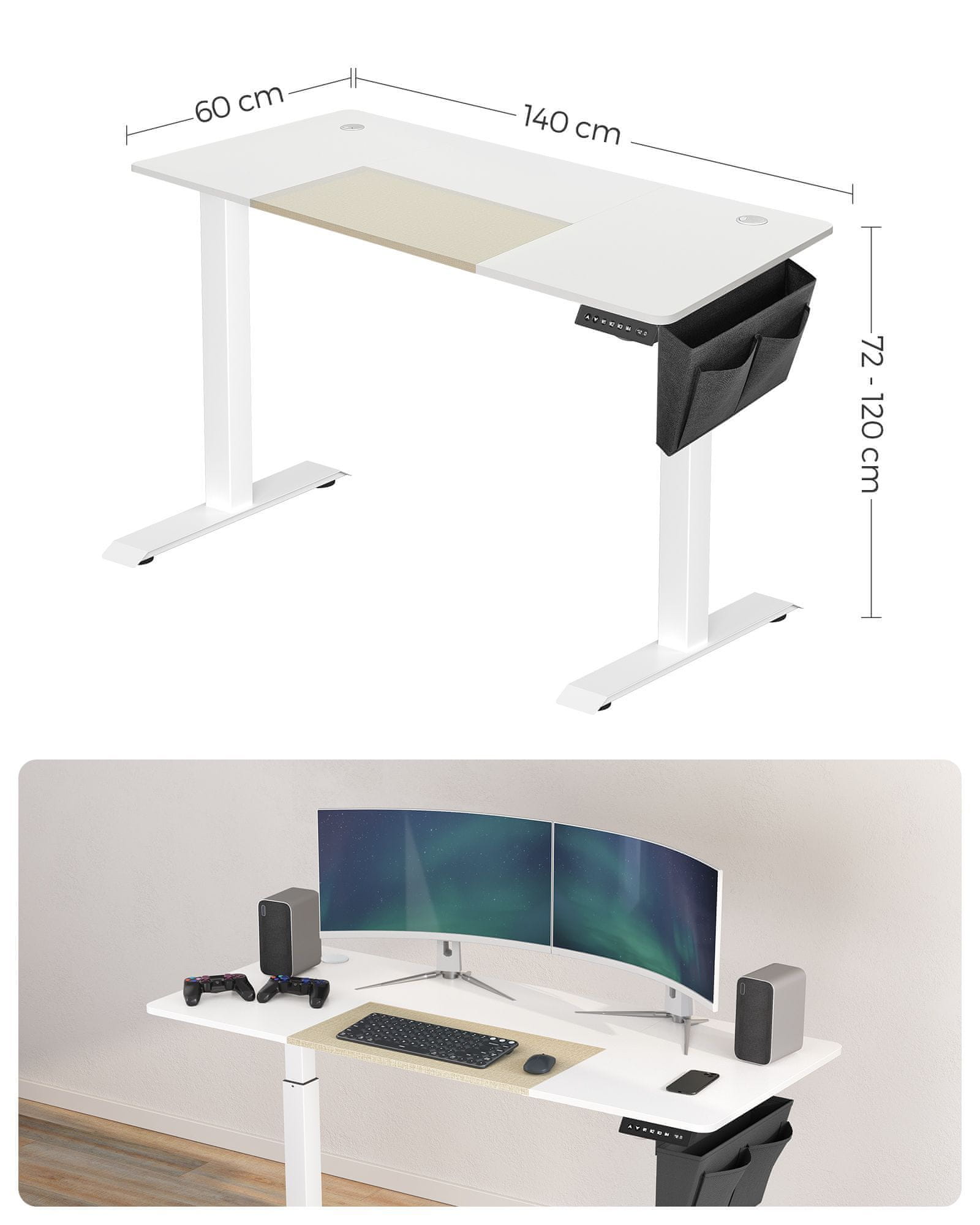 Songmics Stoječa pisalna miza nastavljiva po višini 60x140x72-120 cm bela