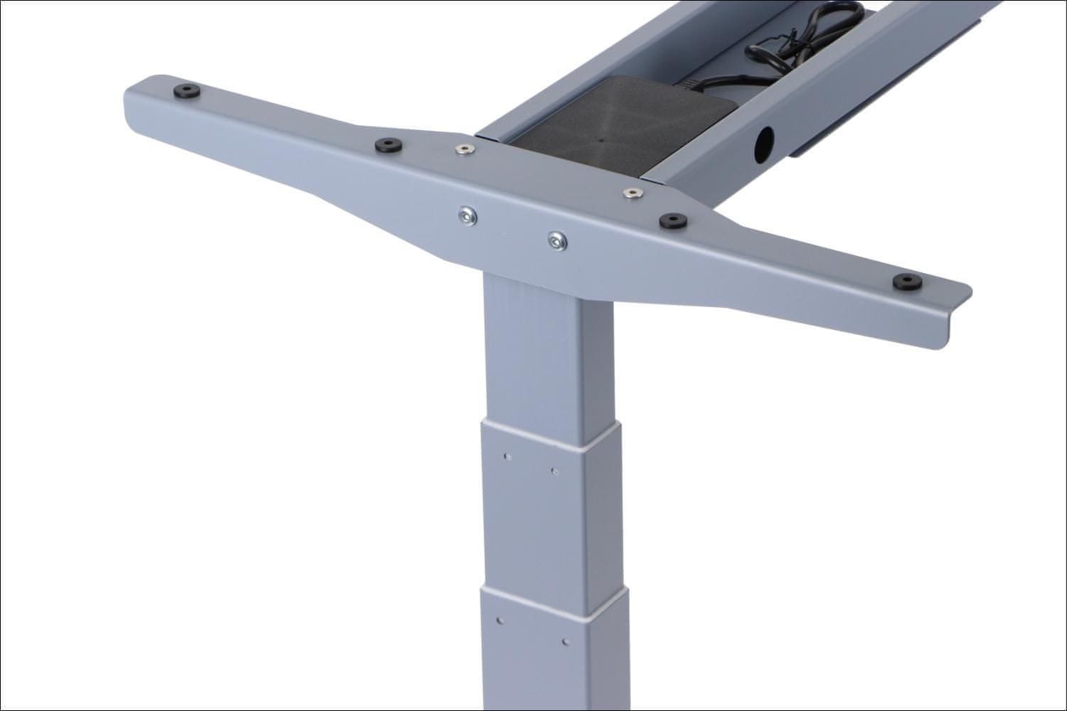 STEMA Električni namizni okvir PRATO 04-3T/A. Električna nastavitev višine 59-123,5 cm. Spomin na 3 višinske položaje. Sistem proti trčenju. Ročna nastavitev dolžine 107-170 cm. 3-segmentna noga. Siva barva