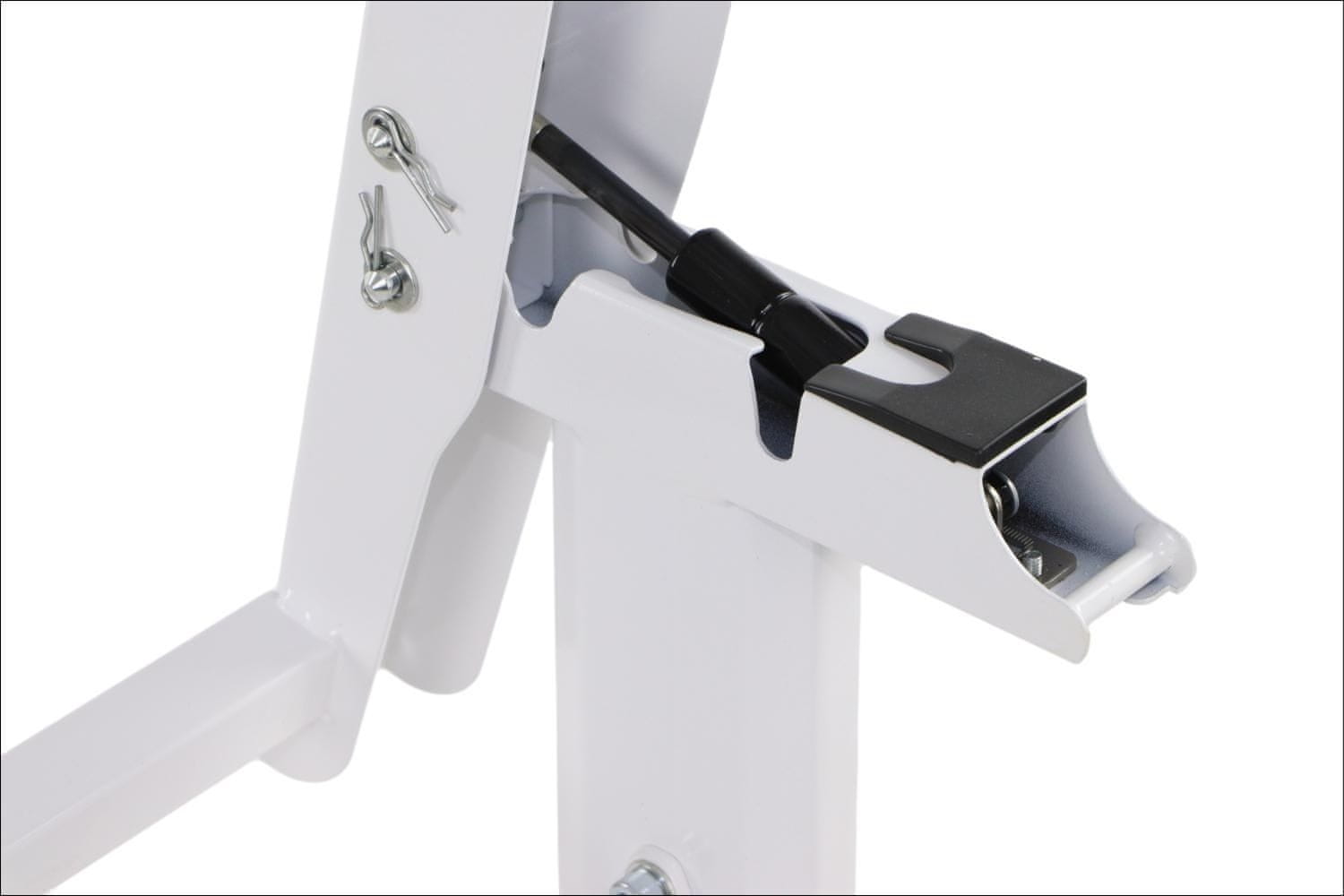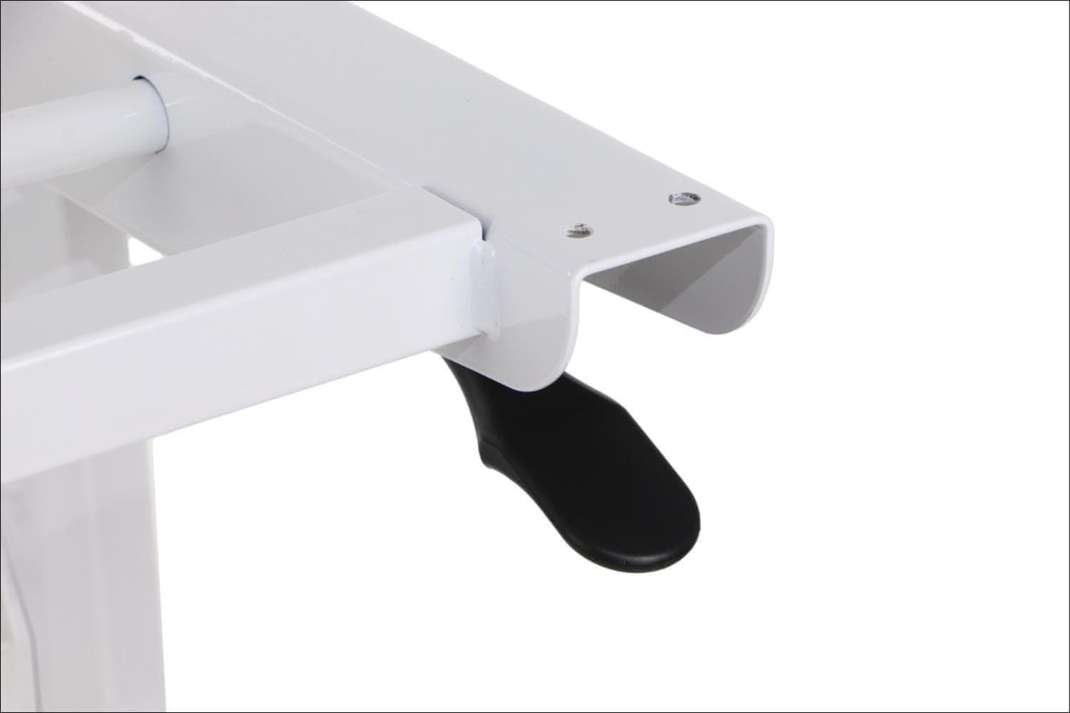 STEMA Okvir nagibne mize NY-A383. Dimenzije 135x58x72 cm. Okvir ima 4 kolesa, vključno z 2 z zavorami. Prašno lakirano v beli barvi.