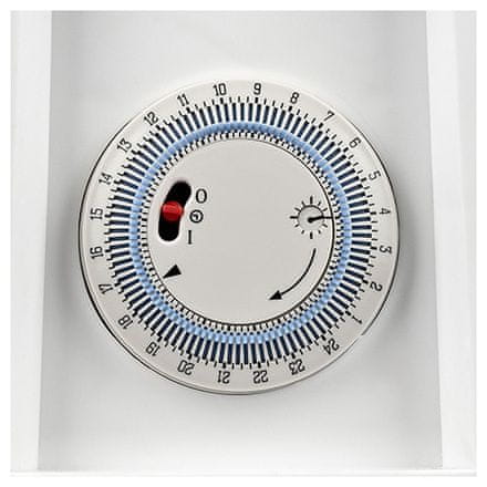 Značilnosti: – prostostoječi konvektor s časovnikom in turbo funkcijo – nastavljiv termostat – 3 stopnje moči – turbo funkcija – lučka za delovanje – varnostna varovalka proti pregrevanju – naravna ali izbrana toplotna konvekcija – praktični ročaji za transport (na strani) – pripravljeno za stensko montažo (globina 20 cm) – časovnik: 24 ur v dnevnem ciklu – napajanje: AC 220–240 V, 50 Hz – poraba energije: 1800 – 2000 W – dimenzije (Š x V x G): 79 × 44,5 × 20 cm – teža: 3,1 kg