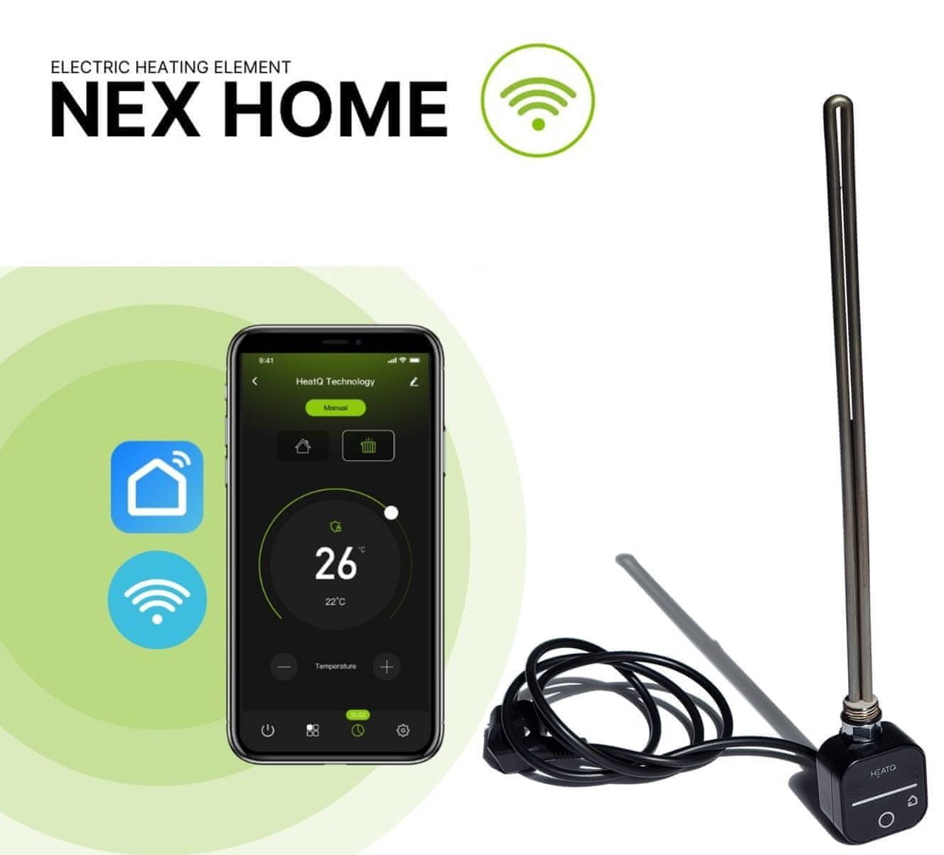 NEX HOME T grelec omogoča uporabo radiatorja kot samostojen električni radiator, ki ga lahko enostavno nadzorujete na daljavo preko WiFi povezave z aplikacijama Smart Life ali Tuya Smart. Vgradnja je preprosta in primerna za samostojno montažo.