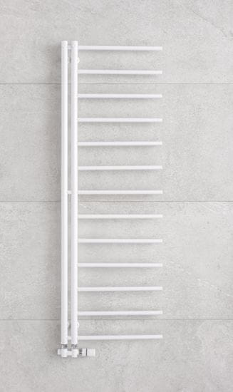Dizajnerski kopalniški radiator s praktično možnostjo obešanja brisač s strani ali z uporabo kavljev na dveh navpičnih ceveh. Glavne prednosti Možnost obešanja brisač s strani, ne da bi jih bilo treba zložiti Vgrajeni kavlji za enostavno in hitro shranjevanje Na voljo tudi v levi izvedbi za prilagodljivo namestitev Uporaba Primerno za kopalnice, wellness prostore in tehnične prostore Idealno za učinkovito sušenje in predgrevanje brisač Značilnosti Elegantna kopalnica Kopalniška omarica PMH z vodoravnimi letvami Dva navpična profila, opremljena s kavlji Izbirna desna ali leva izvedba Tehnični parametri Tip: Kopalniška Kopalniška omarica Zasnova: Desna Dimenzije 500 × 1500 mm Moč 75/65°C: 219 W Priporočena moč električne grelne palice: 200 W Barva: Sijajno bela RAL 9003 Zahvaljujoč sodobnim termostatom lahko enostavno nadzorujemo temperaturo v prostoru, kjer se nahaja radiator. To omogoča individualne nastavitve temperature za vsak prostor, kar poveča udobje in prihrani energijo. Radiatorji so na voljo v različnih stilih in izvedbah, kar omogoča njihovo integracijo v različne notranje prostore. Izbirate lahko med tradicionalnimi dizajni ali sodobnimi različicami. Richter + Frenzel – vaša zanesljiva rešitev za ogrevanje. Naši izdelki za distribucijo vode in ogrevanje izpolnjujejo najvišje standarde kakovosti.