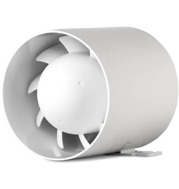 Axialkanalfläkt från aRc-familjen, vanligtvis monterad direkt i ett kanalsystem, har ytterligare funktionalitet tack vare monteringsfoten, vilket gör att den även kan monteras utanför ventilationskanalen.