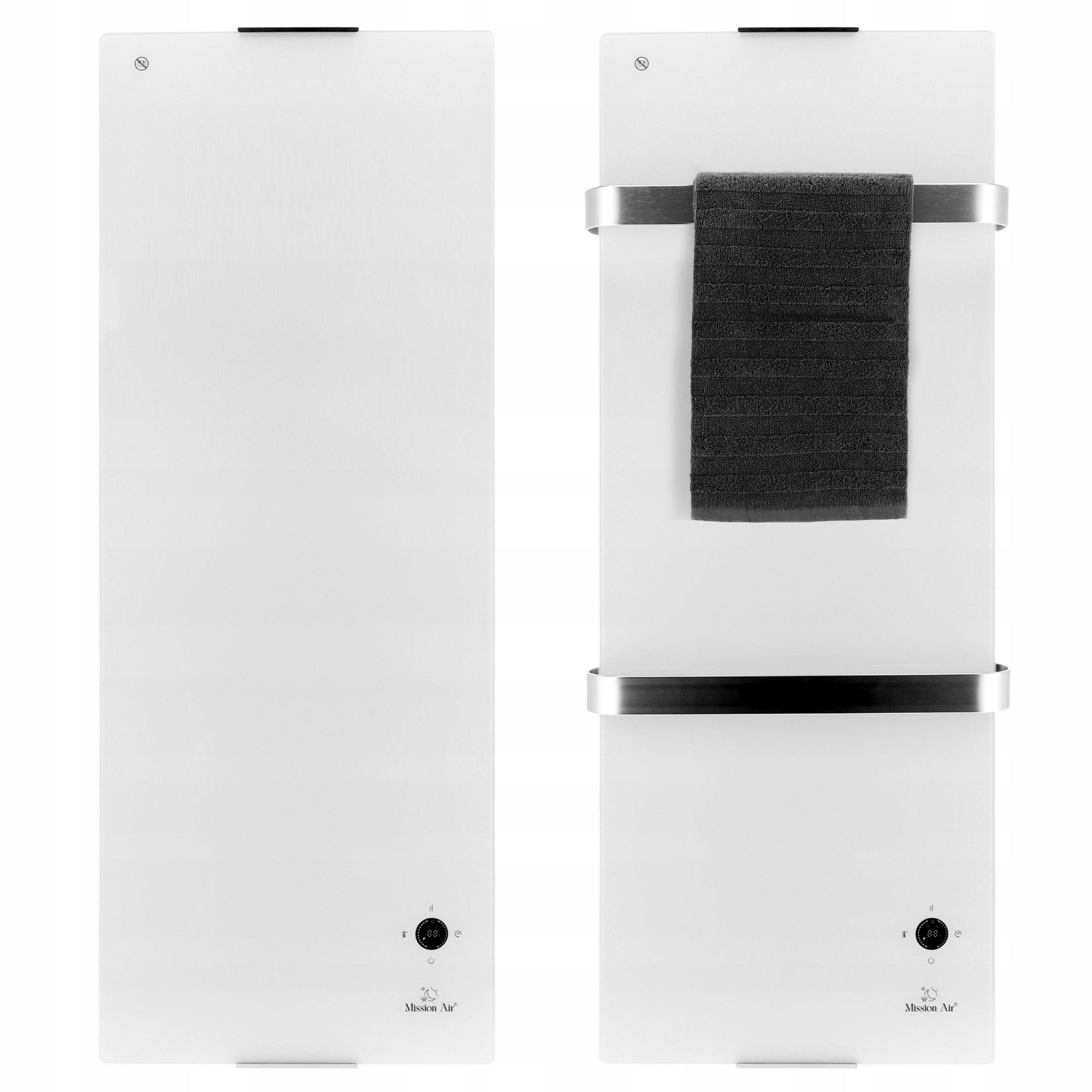 Če se odločite, da ne boste namestili priloženih držal za brisače, boste dobili vizualno preprostejšo stekleno grelno ploščo, ki jo lahko uspešno namestimo v kateri koli prostor, ne le v kopalnico.