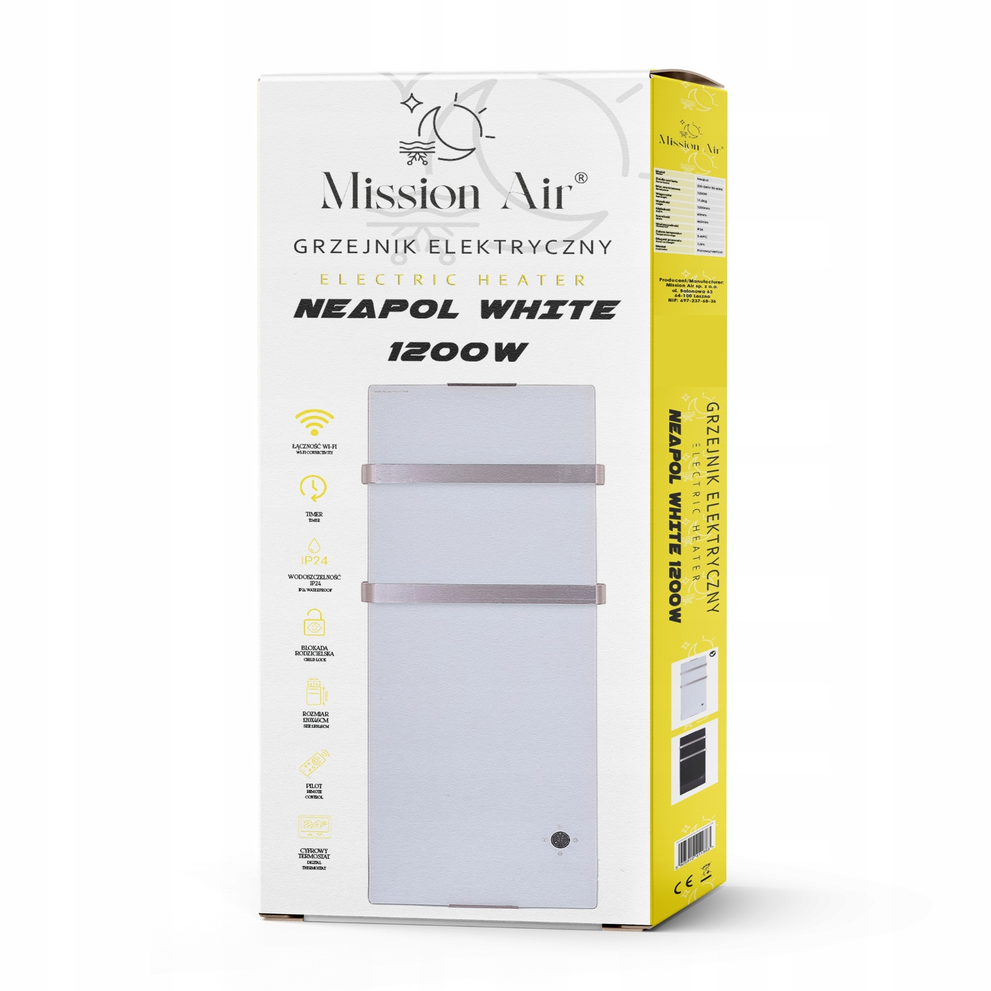 Kopalniški radiatorji Mission Air® NEAPOL z močjo 1200 W so na voljo v beli in črni barvi (naprodaj ločeno).